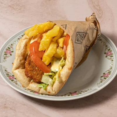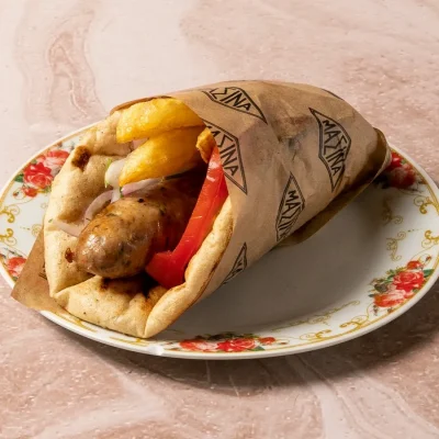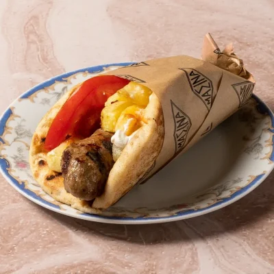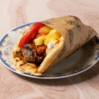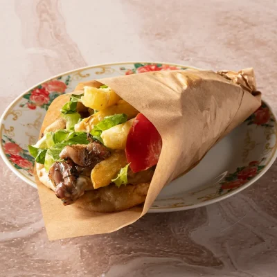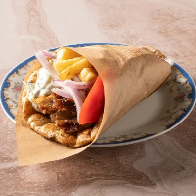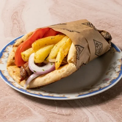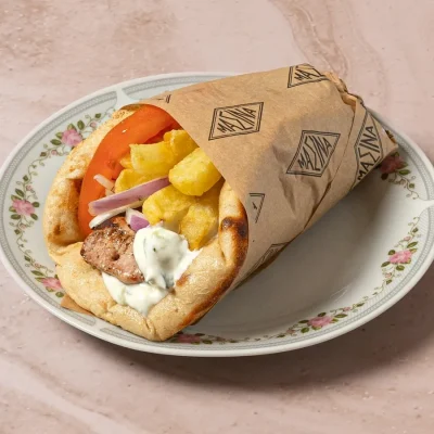 Πίτα γύρος χοιρινός με τα υλικά της επιλογής σας Απ`όλα (πατάτες, ντομάτα, κρεμμύδι & τζατζίκι)