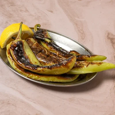 Πράσινες πιπεριές κέρατο στα κάρβουνα