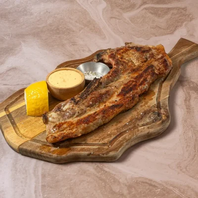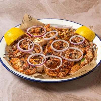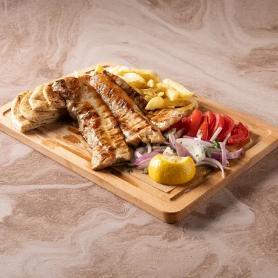 Στη σχάρα με λαδολέμονο. Συνοδεύεται από γαρνιτούρα της επιλογής σας