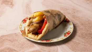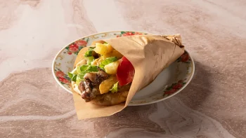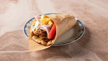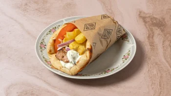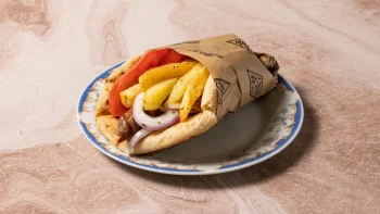 Πίτα καλαμάκι μοσχάρι με τα υλικά της επιλογής σας Απ`όλα (πατάτες, ντομάτα, κρεμμύδι & τζατζίκι)